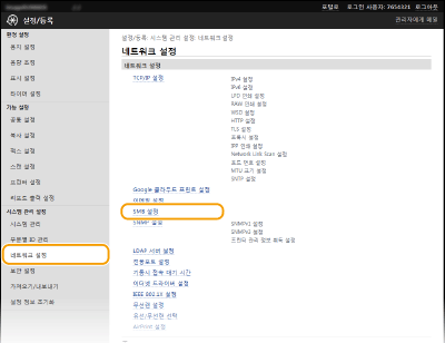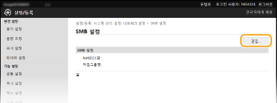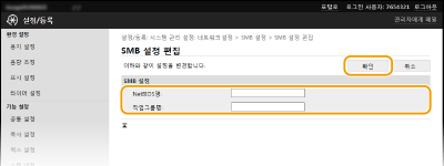 SMB(Server Message Block)는 파일과 프린터 등의 리소스를 네트워크에 연결된 2개 이상의 장치와 공유하기 위한 프로토콜입니다. 본 기기는 SMB를 사용하여 스캔한 문서를 공유 폴더에 저장합니다. 네트워크에 따라 NetBIOS 이름과 작업그룹명을 설정해야 하는 경우도 있습니다.
