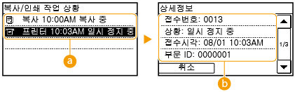 <작업이력 표시>가 <해제>로 설정된 경우 인쇄 로그를 확인할 수 없습니다. 작업이력 표시