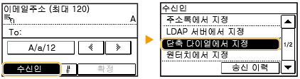 / 를 눌러 지정한 수신인을 전환할 수 있습니다. 삭제하려는 수신인을 표시하고 를 누릅니다. |
