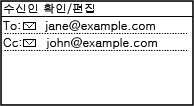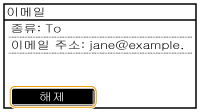 / 를 눌러 지정한 수신인을 전환할 수 있습니다. 삭제하려는 수신인을 표시하고 를 누릅니다. |