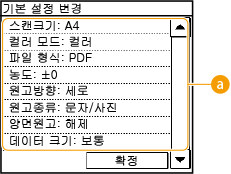 를 누를 때 표시되는 설정입니다 이러한 기본 설정을 자주 수행하는 작업에 맞게 변경하면 스캔할 때마다 동일한 설정을 구성할 필요가 없습니다.