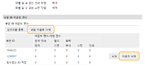 [확인]을 클릭합니다. 모든 부서 ID의 카운트를 0으로 되돌리려면 [모든 카운트 삭제] [확인]을 클릭합니다.![]() |