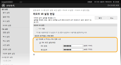 이 확인란을 선택하면 리모트 UI에 액세스하기 위해서는 PIN을 입력해야 합니다.