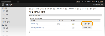 클라이언트 인증에 사용하려는 키 쌍 오른쪽에서 [사용키 등록]을 클릭합니다.