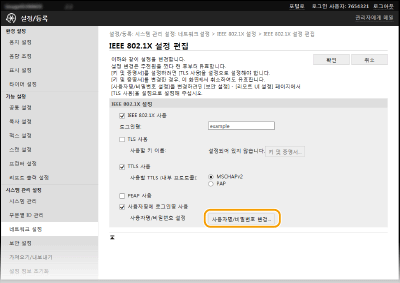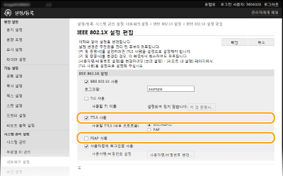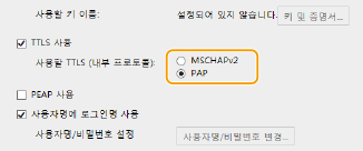 [TTLS 사용] 또는 [PEAP 사용] 확인란을 선택합니다.