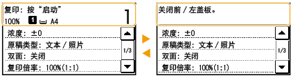 显示所选项目的当前状态。下面以 <复印/打印作业状态> 画面为例进行说明。