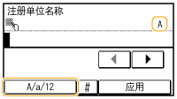 输入的文本类型为 <A> 或 <a> 时,按 或轻触 <#> 以在画面上显示可输入的符号。轻触符号以输入。 |
