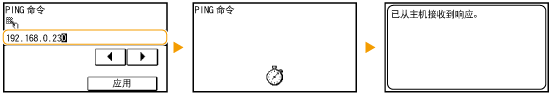 3 | 指定 IP 地址、子网掩码和网关地址(或默认网关)。 按以下顺序指定设置:<IP地址> <子网掩码> <网关地址>。使用数字键输入各个设置,然后轻触 <应用>。 ![]() |