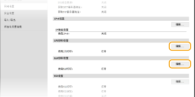 配置 LPD 或 RAW1 | 单击 [LPD打印设置] 或 [RAW打印设置] 中的 [编辑]。 ![]() |