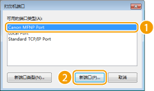 2 | 在 [可用的端口类型] 中选择 [Canon MFNP Port],然后单击 [新端口]。 |