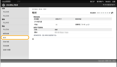 显示纸张来源的纸张尺寸和类型、墨粉盒序列号等其他信息。也可以在门户页(主页)中单击 [检查耗材详细信息] 显示此页面检查耗材画面。