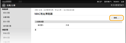 可以从 <主页> 画面中的 <菜单> 启用或禁用 MAC 地址筛选器设置。MAC地址筛选器 |