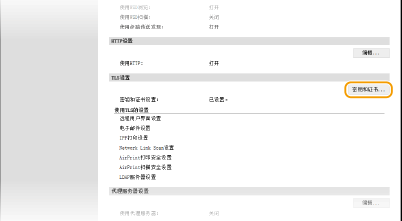 您可以通过传输层安全性 (TLS) 加密本机和计算机上网页浏览器之间的通信。TLS 是用于加密通过网络发送或接收的数据的机制。当远程用户界面用于指定 IEEE 802.1X 认证 (TTLS/PEAP) 或 SNMPv3 的设置时,必须启用 TLS。若要对远程用户界面使用 TLS,则需要设置密钥对并启用 TLS 功能。启用 TLS 之前请生成或安装用于 TLS 的密钥对(