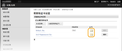 单击 [密钥和证书设置] 验证密钥对,或单击 [CA证书设置] 验证 CA 证书。