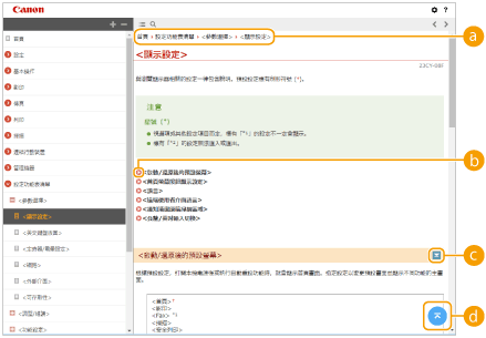 按一下可設定決定 使用者指南 顯示方式的參數,例如字元大小或版面配置。