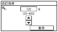或數字鍵輸入影印倍率,然後點選 <套用>。可以將影印倍率設定為 25 % 至 400 %,以 1 % 為單位增減。
