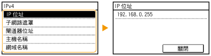 若 IP 位址顯示為「0.0.0.0」,表示設定錯誤。