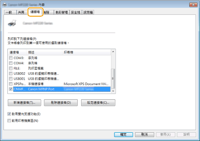 選擇 [Canon MFNP Port],該選項位於 [可用的連接埠類型] 然後按一下 [新增連接埠]。