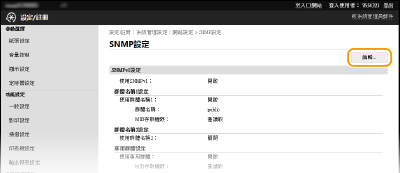 您也可以從 <首頁> 畫面中的 <功能表> 指定 SNMPv1 設定並啟用/停用 SNMPv3 設定。 SNMP設定