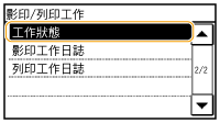 <顯示工作日誌> 設為 <關閉> 時,不能檢查列印日誌。