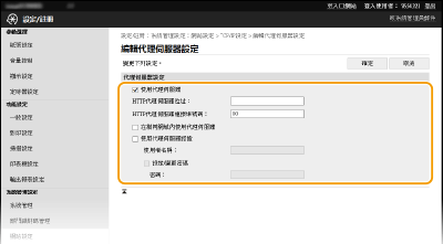 勾選 [使用代理伺服器] 核取方塊,並指定所需設定。