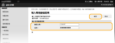 [鍵值名稱] 輸入要註冊的鍵値組名稱,最多可以輸入 24 個英數字元。