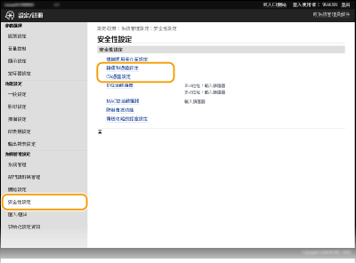 [鍵值和憑證設定] 或 [CA憑證設定]。