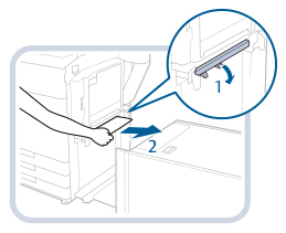 Papiret kan også sætte sig fast i indgangen på siden af hovedenheden. Fjern papir der sidder fast i indgangen.