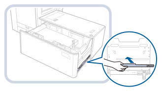 Jeżeli ładujesz papier, jego krawędzie mogą się wywinąć w szufladzie lub pozostawiona może być szczelina pomiędzy krawędzią papieru i płytkami zmiany formatu ponieważ format aktualnie ładowanego papieru nie odpowiada formatowi, dla którego ustawiono płytki