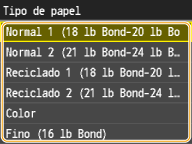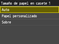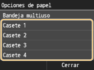 <Casete 2>, <Casete 3> y <Casete 4> solamente se mostrarán cuando estén instalados la Unidad de Alimentación por Casete o el Módulo de cassette opcionales.