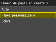 2 | Pulse un tamaño de papel personalizado registrado. Pulse <Personalizado> para especificar un tamaño de papel. |