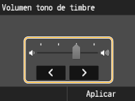 <Tono de entrada> | Sonido producido cada vez que se pulsa una tecla del panel de control o cuando se pulsa un elemento no válido en la pantalla | <On> (se produce el sonido) u<Off> (no se produce ningún sonido) |