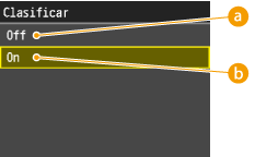 | | A la hora de preparar varias copias de documentos de varias páginas, establezca <Clasificar> en <On> para clasificar las copias según el orden de las páginas. Esta función resulta útil cuando se preparan folletos para reuniones o presentaciones. |