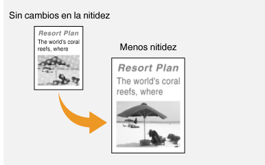 | | Puede ajustar la nitidez de la imagen antes de enviarla. Aumente la nitidez para que las líneas y los textos borrosos se vean con mayor claridad o disminúyala para mejorar el aspecto de las fotos de revistas. |