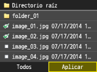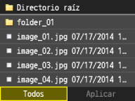 Puede cambiar el método de visualización entre <Detalles> (para nombres de archivos y fechas de modificación) e <Imágenes> (para vistas preliminares). Al previsualizar las imágenes, puede consultar el contenido del archivo antes de seleccionar un archivo para imprimir.