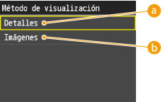 Puede especificar <Detalles> o <Imágenes> como método de visualización predeterminado.