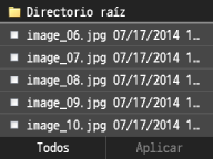 | Si pulsa <Fecha/hora (ascendente)> o <Fecha/hora (descendente)>, los archivos se clasificarán en base a las fechas y horas de modificación de los archivos. |