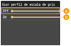 Si puede ver las gradaciones o líneas dentadas en las impresiones de datos negros o grises, seleccione <Off> en Cuatricromía de negro puro RGB y seleccione <Foto> en <Perfil de salida>.