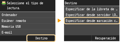 Repita los pasos siguientes. Es posible especificar un máximo de 100 destinos.