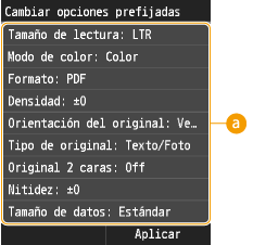 Seleccione el elemento que desee configurar y cambie el valor predeterminado.