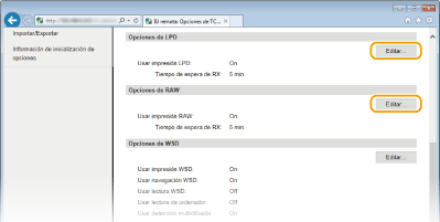 Configuración de LPD o RAW1 | Haga clic en [Editar...] en [Opciones de LPD] u [Opciones de RAW]. ![]() |