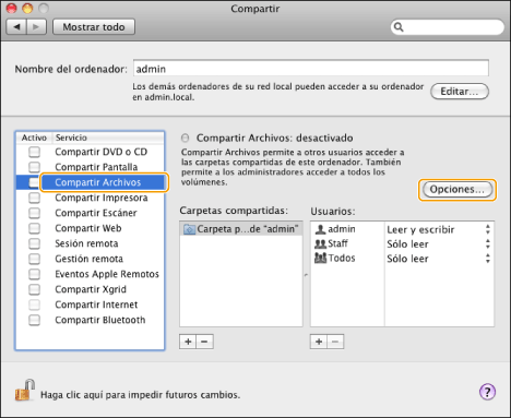 2 | Seleccione [Compartir Archivos] haga clic en [Opciones].![]() |