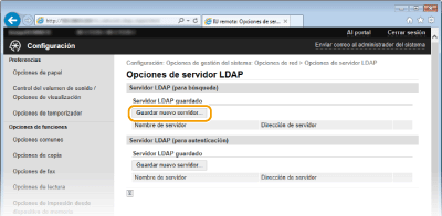 Haga clic en [Guardar nuevo servidor...] en [Editar servidor LDAP (para búsqueda)].