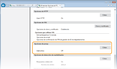 Seleccione la casilla de verificación para utilizar el servidor proxy especificado para la comunicación con un servidor HTTP.