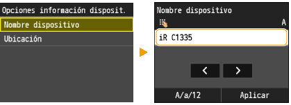Introduzca hasta 32 caracteres alfanuméricos en el nombre y en el lugar de instalación para poder identificar el equipo.