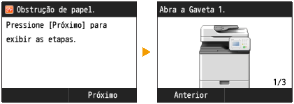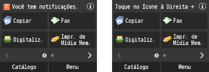 ![]() Quando <Você tem notificações.> ou <Toque no Ícone à Direita ->> for exibido |