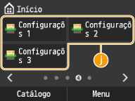![]() | <Configurações Favoritas Cópia> <Configurações Favoritas de Fax> <Conf. Favoritas Digitalização>Exibe configurações usadas com frequência registradas para cada função de cópia, Fax e digitalização. <Cópia do Cartão ID> é pré-registrado em <Configurações 1>. Registrando configurações de cópia frequentemente usadas |