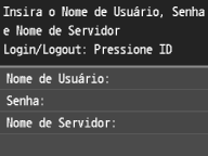 Especificando a autenticação do servidor LDAPDepois de tocar em <Fax> ou em <Digitalização>, uma tela de login é exibida antes de alterar para a tela desejada. Digite o nome de usuário, senha e nome do servidor corretos para habilitar o uso das funções desejadas. Especificando autenticação do servidor LDAP (E-mail/Pasta compartilhada/Servidor de arquivo) ![]() Usando um cartão de controleA mensagem <Insira o cartão.> é exibida na tela. Insira o cartão de controle no Leitor do cartão de cópia. Copy Card Reader-F1 |