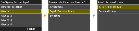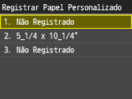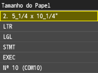 Os tamanhos de papel que são registrados no procedimento acima são exibidos na tela para a seleção do tamanho do papel.