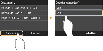 no painel de operação. Você também pode cancelar a cópia depois de verificar o status de cópia.